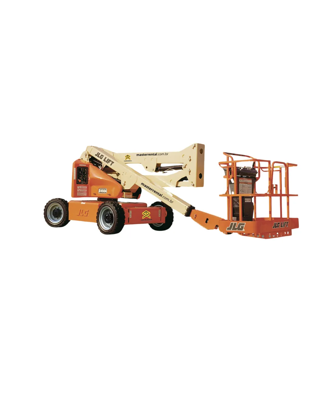 Plataforma Articulada Elétrica JLG E450A é uma das plataformas articuladas elétricas mais confiáveis do mercado, com 16 metros de altura de trabalho e alcance horizontal de 7,5 metros.