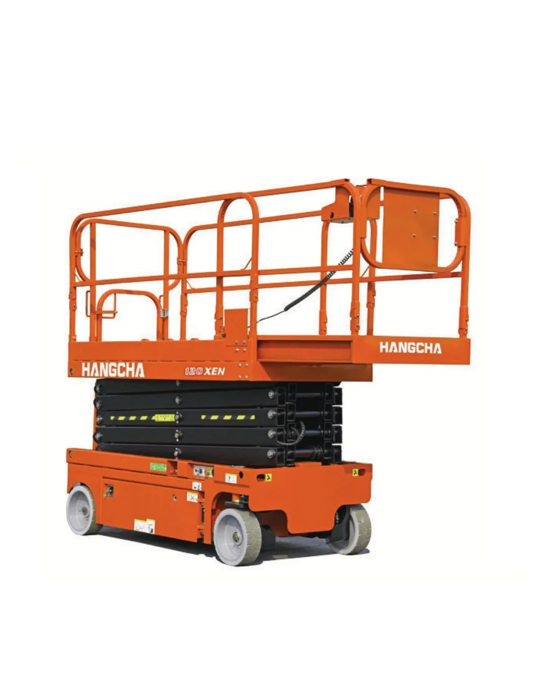 A Plataforma Tesoura Elétrica Hangcha 100 XENS é um modelo elétrico autopropulsionado que une estabilidade, eficiência e precisão, com 10 metros de altura de trabalho.